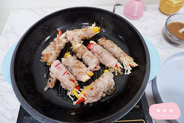 3.捲起的接口朝下煎,避免捲好的蔬菜鬆開