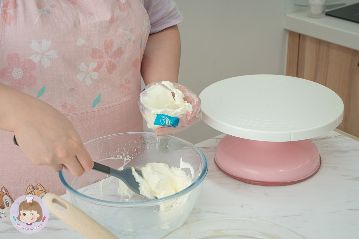 1.300g鮮奶油+20g砂糖打到8分發