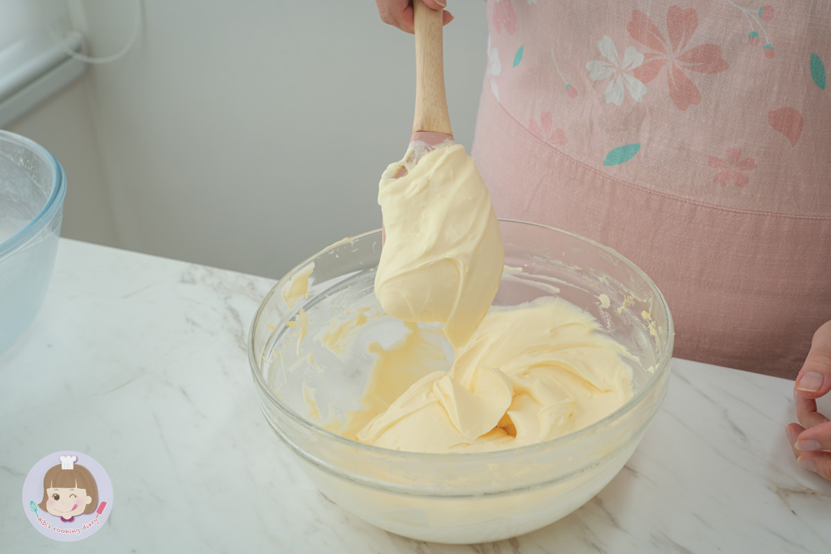 2.分次加入打發的鮮奶油攪拌均勻